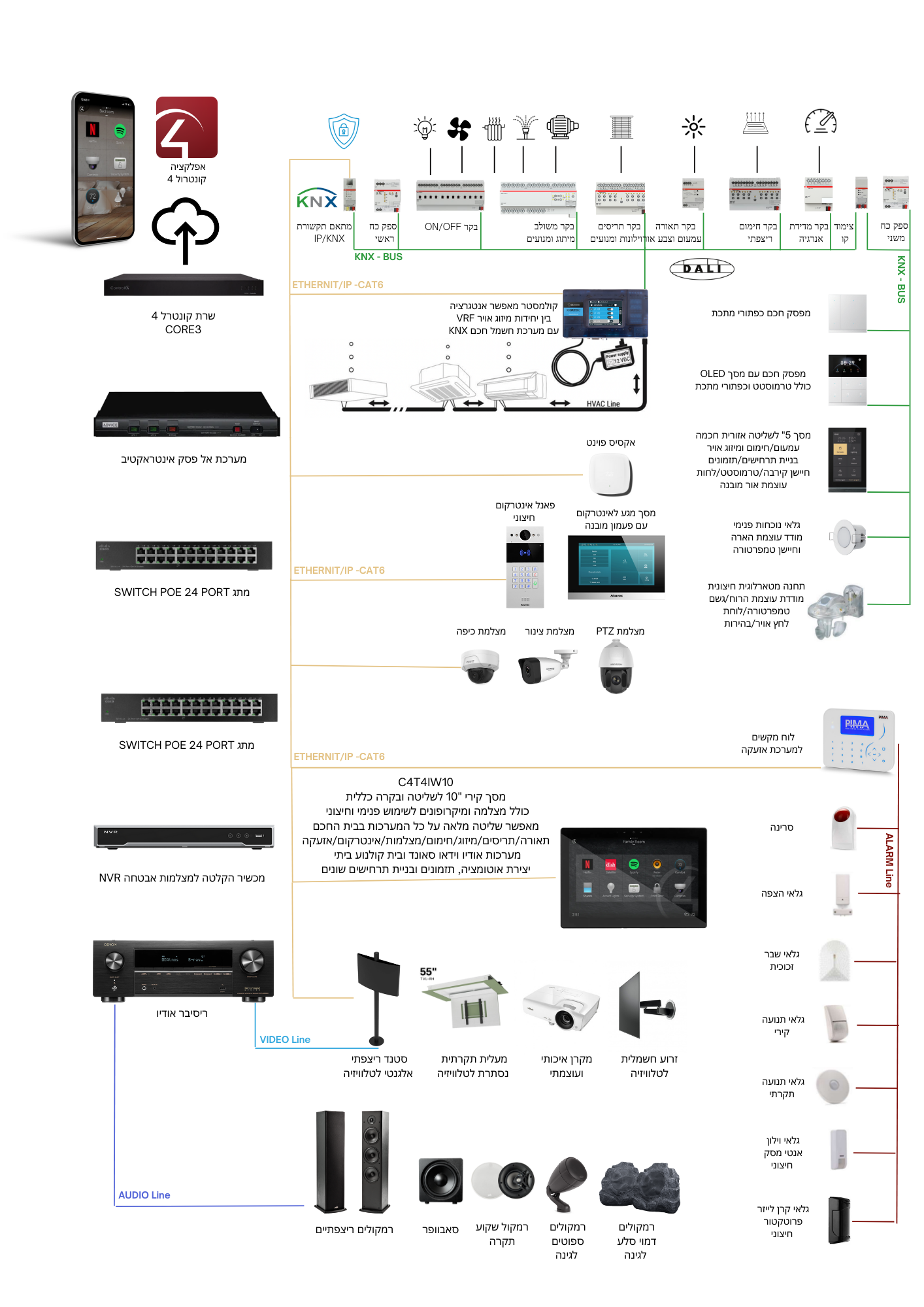 - שליטה ובקרה מרחוק באמצעות אפליקציות או מסכים חכמים.